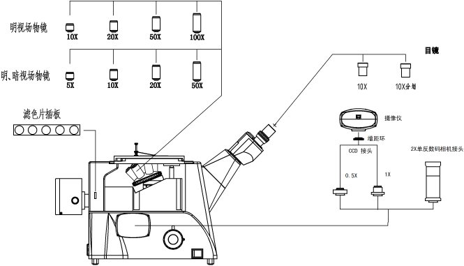 粗微動同軸調焦,帶鎖緊裝置,微動格值:2μm.