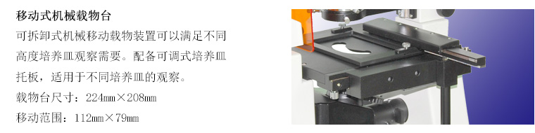 可拆卸移動臺面, 尺寸: 208mmX224mm,移動范圍:79mmX112mm