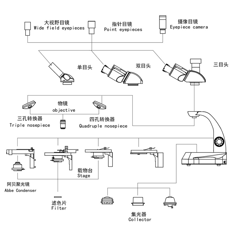 ▲ 配置大視野目鏡和消色差物鏡,視場清晰。▲ 粗微動同軸調焦機構,微動格值:4μm。▲ 高亮白光LED燈照明。- 型號L790-ML790-BL790-T目鏡平場目鏡WF10X(Φ18mm)物鏡消色差4X/0.10 W.D37.38消色差10X/0.25 W.D6.61消色差40X/0.65(彈簧)W.D0.64消色差100X/1.25(彈簧,油) W.D0.194頭座單目鏡,可360?旋轉(傾斜45?)雙目(傾斜30?)三目(傾斜30?)轉換器四孔轉換器載物臺雙層機械移動式(尺寸:125X115mm,移動范圍:70X30mm)阿貝聚光鏡N.A.1.25升降上下可調濾色片藍濾色片磨砂玻璃集光器LED燈適用電器底盤LED(Ф8)照明器,高亮白光選配件目鏡平場目鏡WF16X(Φ11mm)指針10X(Φ18mm)物鏡消色差4X/0.10 W.D31.67消色差10X/0.25 W.D6.61消色差40X/0.65(彈簧) W.D0.64消色差100X/1.25(彈簧,油) W.D0.195頭座500萬像素數碼單目頭(可360?旋轉)轉換器三孔 (加1防塵蓋)載物臺固定式(尺寸:120mmX120mm, 帶單片聚光鏡,光欄可變)固定式帶彈簧片夾與五孔固定光欄尺寸120X120mm 移動范圍:70X30mm.濾色片綠濾色片黃濾色片電器底盤LED照明器,高亮白光,可調光可充電12V 20W 鹵素燈,亮度可調,熒光燈5W,110V/220V 可選擇220V/110V 20W, 白熾燈攝像儀USB輸出 300萬像數碼攝像儀電源適配器LED適用輸入:230V~50/60HZ 輸出:9V, 500mA輸入:110V~50/60HZ 輸出:9V, 500mA