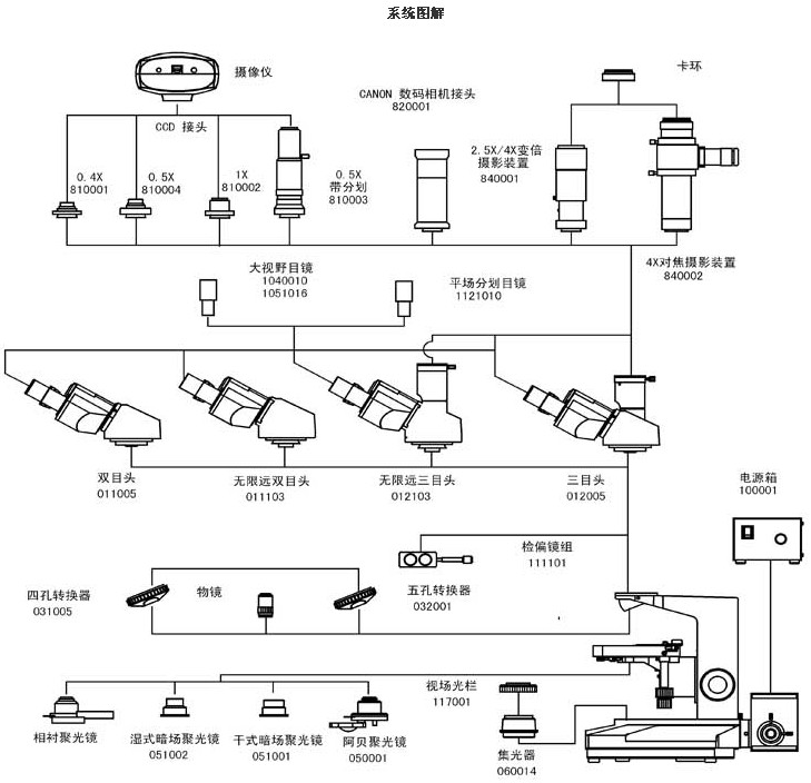 名稱 類別/技術(shù)參數(shù) 編號(hào)目鏡 大視野 WF16X(Φ11mm) 1051016分劃 10X(Φ18mm) 格值0.1mm/格 1121010目鏡筒 三目鏡(傾斜30?) 012005濾色片 綠濾色片 115002黃濾色片 115003轉(zhuǎn)換器 四孔(內(nèi)向式滾珠內(nèi)定位) 031005聚光鏡 暗場(chǎng) 干式 051001濕式 051002相襯裝置 目鏡 對(duì)中望遠(yuǎn)鏡 110001物鏡 相襯平場(chǎng)消色差 10X/0.25 PHP 2420110相襯平場(chǎng)消色差 20X/0.40 PHP(彈簧) 2420120相襯平場(chǎng)消色差 40X/0.65 PHP(彈簧) 2420140相襯平場(chǎng)消色差 100X/1.25 PHP(彈簧,油) 2420111轉(zhuǎn)盤式相襯聚光鏡(PH-Ⅰ) 052001轉(zhuǎn)盤式相襯聚光鏡(PH-Ⅱ) 052004插板式相襯聚光鏡 052002拉板式相襯聚光鏡 052003無(wú)限遠(yuǎn)光學(xué)系統(tǒng) 目鏡筒 雙目鏡(傾斜30? ) 011103三目鏡(傾斜30? ) 012103目鏡 對(duì)中望遠(yuǎn)鏡 110002物鏡 無(wú)限遠(yuǎn)平場(chǎng)消色差 4X/0.10 2060104無(wú)限遠(yuǎn)平場(chǎng)消色差 10X/0.25 2060110無(wú)限遠(yuǎn)平場(chǎng)消色差 20X/0.40 2060120無(wú)限遠(yuǎn)平場(chǎng)消色差 40X/0.65(彈簧) 2060140無(wú)限遠(yuǎn)平場(chǎng)消色差 100X/1.25(彈簧,油) 2060111無(wú)限遠(yuǎn)相襯平場(chǎng)消色差 10X/0.25 PHP 2470110無(wú)限遠(yuǎn)相襯平場(chǎng)消色差 20X/0.40 PHP 2470120無(wú)限遠(yuǎn)相襯平場(chǎng)消色差 40X/0.65 PHP(彈簧) 2470140無(wú)限遠(yuǎn)相襯平場(chǎng)消色差 100X/1.25 PHP(彈簧,油) 2470111CCD接頭 0.4X 8100010.5X 8100041X 8100020.5X帶分劃尺,格值0.1mm/格 810003攝像儀 DV-1(帶USB和Video輸出) 800001DV-2(帶USB輸出) 800003DV-3(帶Video輸出) 800005數(shù)碼相機(jī)接頭 CANON數(shù)碼相機(jī)接頭(A610,A620,A630,A640) 820001攝影裝置 2.5X/4X變倍攝影裝置帶10X取景目鏡 8400014X對(duì)焦攝影裝置 840002MD卡環(huán) 840003PK卡環(huán) 840004簡(jiǎn)易偏光系統(tǒng) 起偏器(可360?旋轉(zhuǎn)) 111001檢偏器 111101