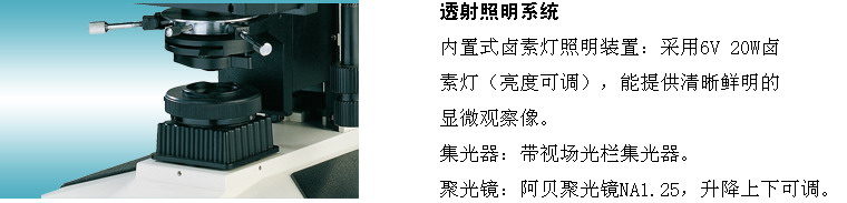 ▲ 采用柯勒照明方式, 6V 20W鹵素燈照明,亮度可調.