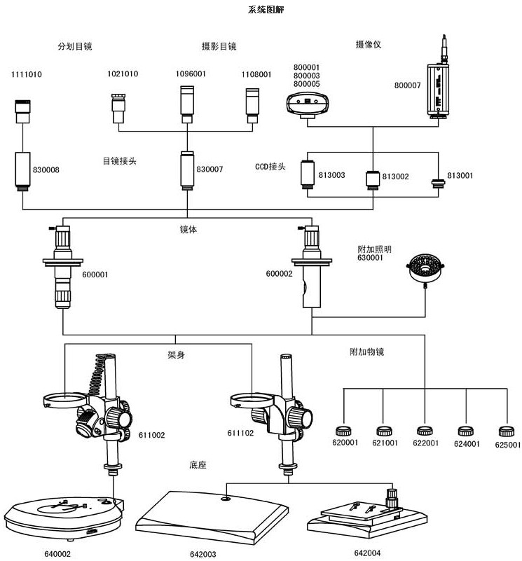 名稱 類別/技術(shù)參數(shù) 編號 目鏡 分劃廣角目鏡 10X(Φ18mm),格值0.1mm/格 1021010 分劃廣角目鏡 10X(Φ20mm),格值0.1mm/格 1111010 目鏡接頭 配分劃廣角目鏡10X(Φ20mm) 830008 附加物鏡 0.3X 工作距離:249mm 620001 0.5X 工作距離:152mm 621001 0.75X 工作距離:113mm 622001 1.5X 工作距離:55.5mm 624001 2X 工作距離:40.7mm 625001 照明器 8W/90~265V 環(huán)形LED照明器工作距離35~200mm 630001 CCD接頭 0.35X 813001 0.5X 813002 攝像儀 攝影目鏡帶USB輸出 1096001 攝影目鏡帶Video輸出 1108001 DV-1帶USB和Video輸出 800001 DV-2帶USB輸出 800003 DV-3帶Video輸出 800005 CCD 攝像儀