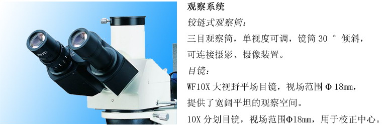 ▲ 6V 20W鹵素?zé)?亮度可調(diào)。▲ 三目鏡筒,可自由切換正常觀察與偏光觀察,可進(jìn)行100%透光攝影。