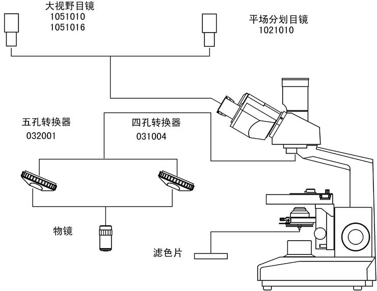 ▲ 配置大視野目鏡和消色差物鏡,視場大而清晰。
